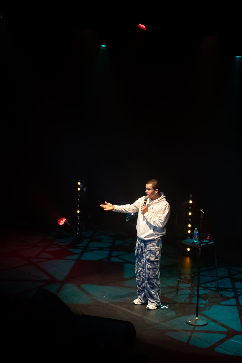 Je m’appelle Noé Caselli. J’ai commencé par le théâtre, puis j’ai découvert le stand-up — et depuis, je me suis rendu compte qu’on pouvait jouer sa propre vie sans costume ni mise en scène. C’est à la fois grisant et terrifiant… mais surtout très drôle. Sur scène, je parle de ce que je vis, de ce que j’observe, de ce qui m’échappe aussi. J’aime l’absurde du quotidien, les petites maladresses humaines, et ce moment magique où le public rit exactement là où je ne m’y attendais pas. Avec Ginger Dragon, on a créé le spectacle “Rien de Grave”. C’est un titre honnête : on rit, on se questionne, mais au fond… tout va bien. Parce que rire de soi, c’est déjà une façon d’aller mieux. Je joue régulièrement au Bobar Comedy Club, là où j’ai appris que le stand-up, c’est avant tout un échange — simple, sincère et vivant.